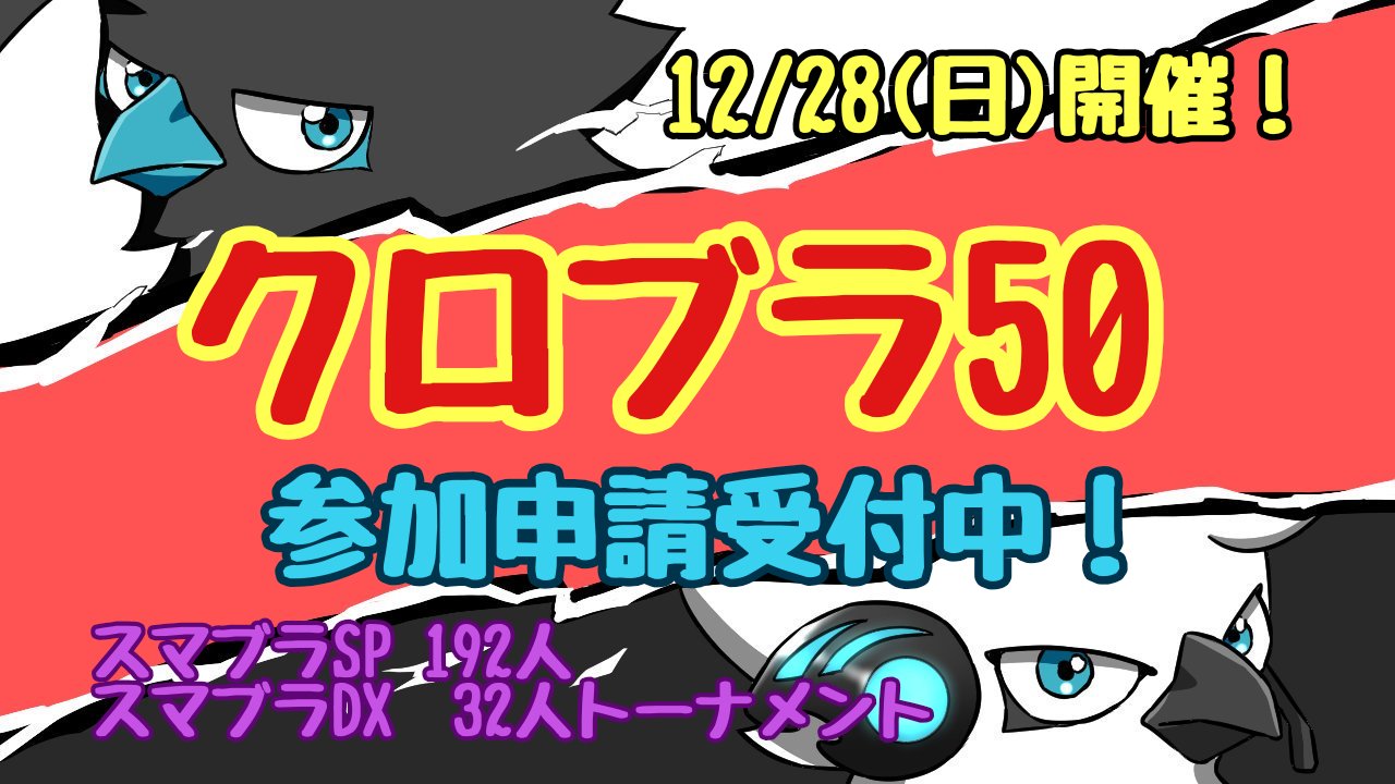 2025年12月28日(日)に第50回クロブラを開催します。 開催日:2025/12/28(日) 内容:大乱闘スマッシュブラザーズSPECIAL(スマブラSP)トーナメント 192人大乱闘スマッシュブラザーズDX(スマブ […]